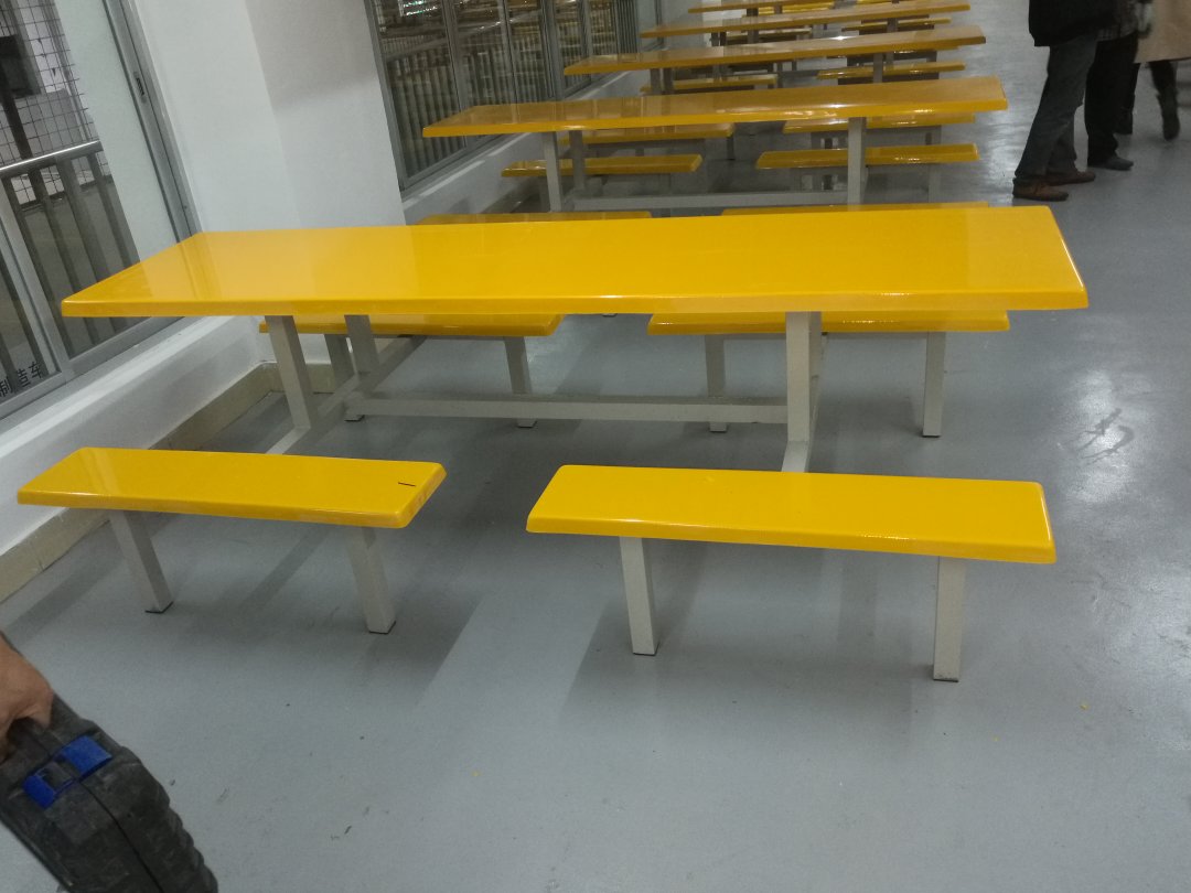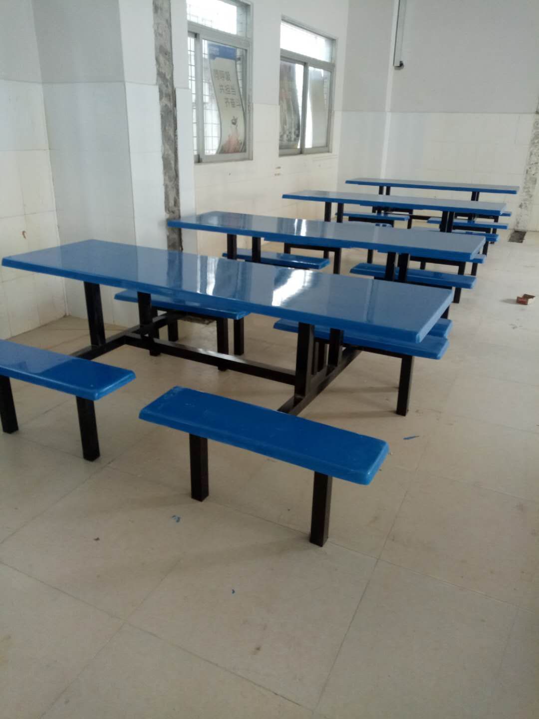桌麵凳麵(miàn)玻璃鋼材質,支架鍍鋅管焊接,表麵烤漆灰(huī)白色。