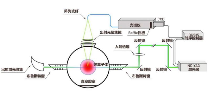 等離子體中心到透鏡的距離(lí)L和光纖的芯徑,及像(xiàng)斑(bān)決定了收集透鏡的焦距。舉例如下:如果像斑要求是fP =2mm,光纖芯徑400mm, 則(zé)物像比是4,如果L=320mm, 則透鏡的焦距就是320/4=80mm。同時如果觀測的等離子體範圍是(shì)50mm,那光纖一字排開的範圍就(jiù)是50mm/4=12.5mm。這個寬度和連接譜儀一側的光纖束的尺寸很(hěn)接近了,連接收集透(tòu)鏡一側(cè)光纖也應該是密集排布,這樣兩端容納的光纖數量就是匹配的。