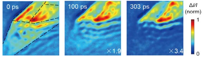 點泵浦+寬場探測(載流子遷移) 寬場泵浦+寬場探測(載流子分布)
